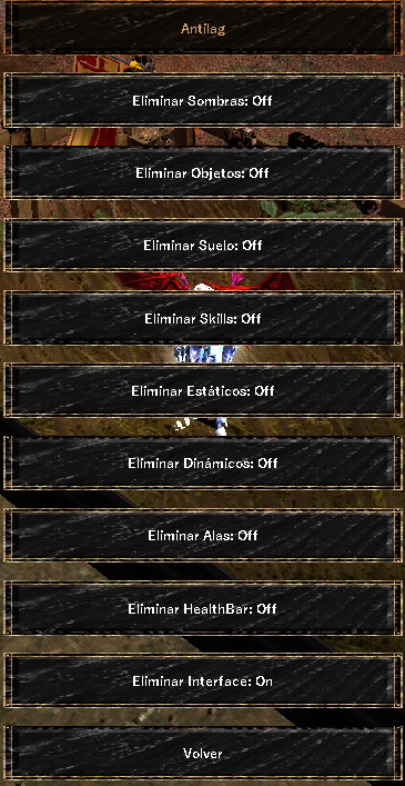 Aqui podras activar / desactivar: efectos, alas, sombras, objetos, terrains, interfaces y todo lo necesario para que el juego te corra mucho mas fluido en tu computadora